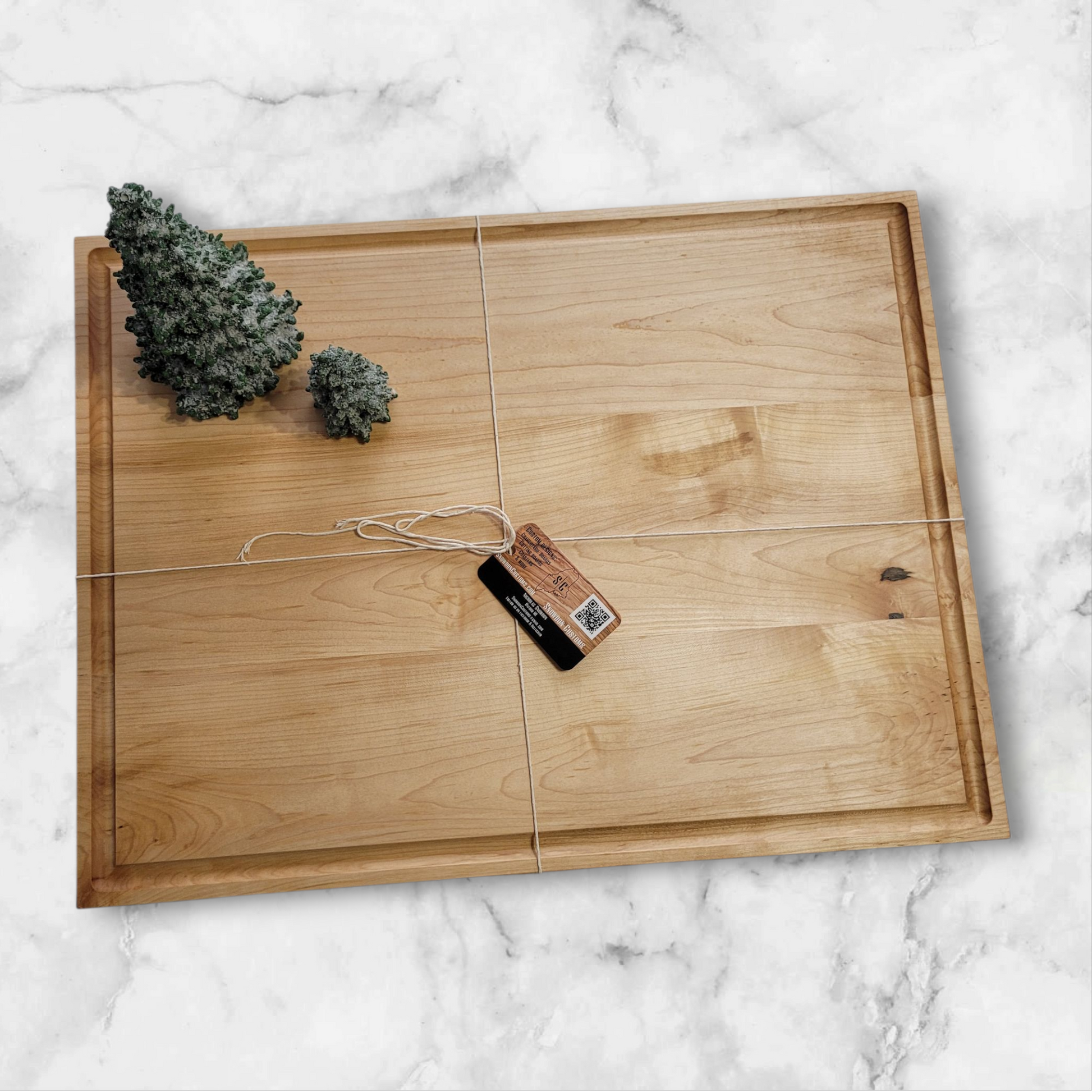 No better way then a large cutting surface for your prepping needs and detailed groove to keep your area clean!