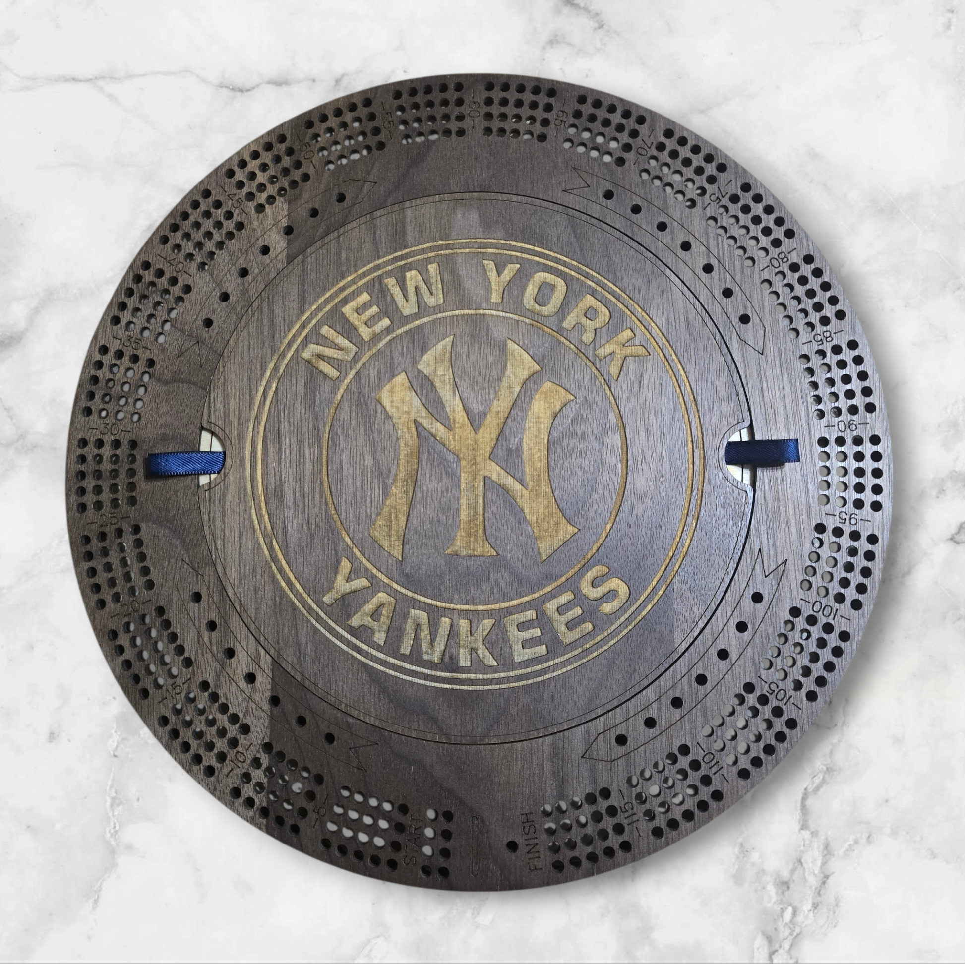 This custom 4 player cribbage board, comes with everything you need to play! (Cards and pegs included)